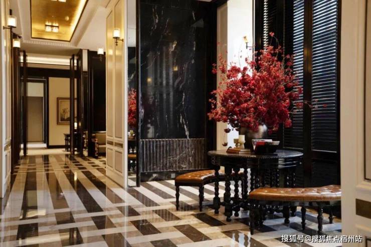 值得一提的还有:为了满足不同年龄段业主的需求,项目在多楼栋设有架空层,涵盖健身、阅读、娱乐等功能,并且将海派元素融入其中,有一种 五星级酒店长廊的既视感!