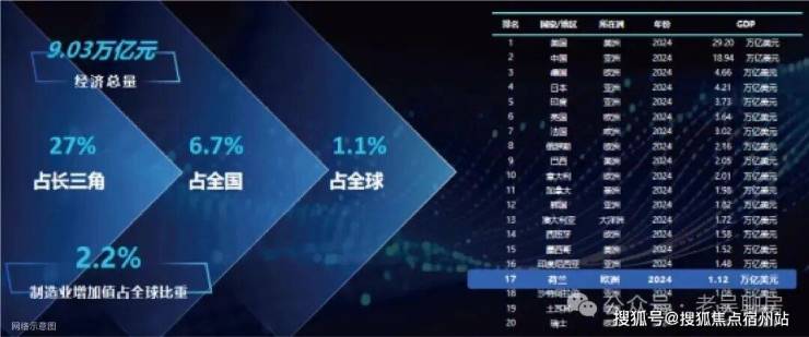 2024年,G60九城的GDP总量达到9万亿(1.27万亿美元) ,超过荷兰的经济总量,相当于全球各国经济总量排名的17位。