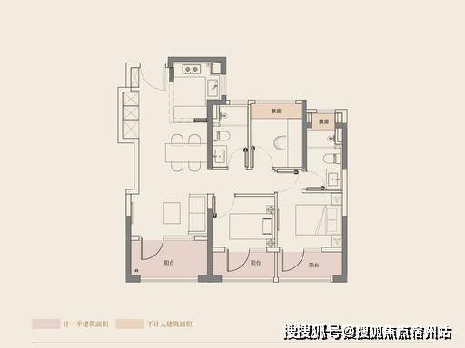 2. 建面约 106㎡ 三房两厅两卫(樾心)—— 改善主流,餐客横厅