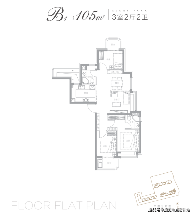 本次项目主推建面约105㎡3房2卫: