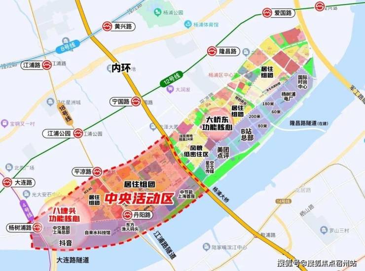 大桥东功能核心汇聚了杨浦滨江更多的超高层建筑群,拥有 美团、哔哩哔哩、星空华文传媒总部、国际时尚中心、杨树浦电厂旧改项目等地标产业&建筑。