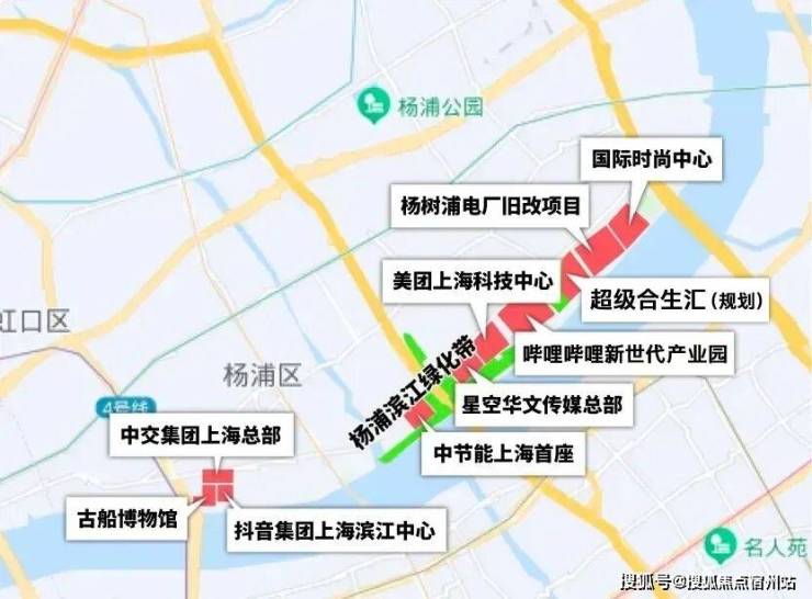除了已经明确入驻的B站、美团外,字节跳动、得物等互联网公司也布局在杨浦滨江。