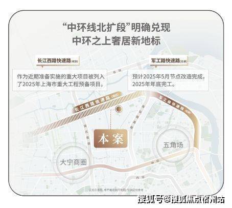 军工路快速路25年开工,长江西路快速路规划26年开工,快速链通城心,随着中环北抬的政策落地,淞南将正式进入中环时间。未来经逸仙高架,进入南北高架、内环高架、中环高架,可快速链通南北上海。宝山招商序售楼处电话☎:400-833-6309【已认证】