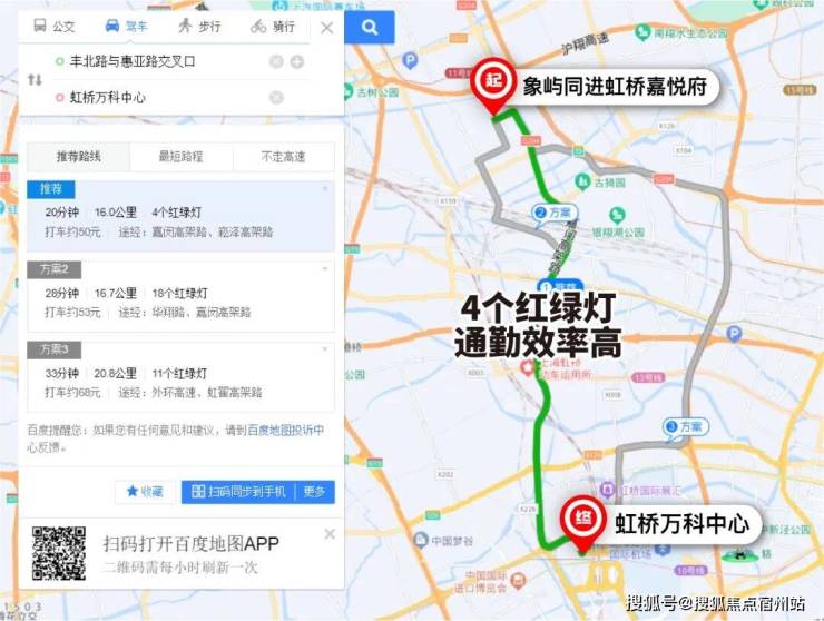 就拿虹桥嘉悦府来说,行驶到虹桥万科中心,中途仅4个红绿灯,通勤高效。