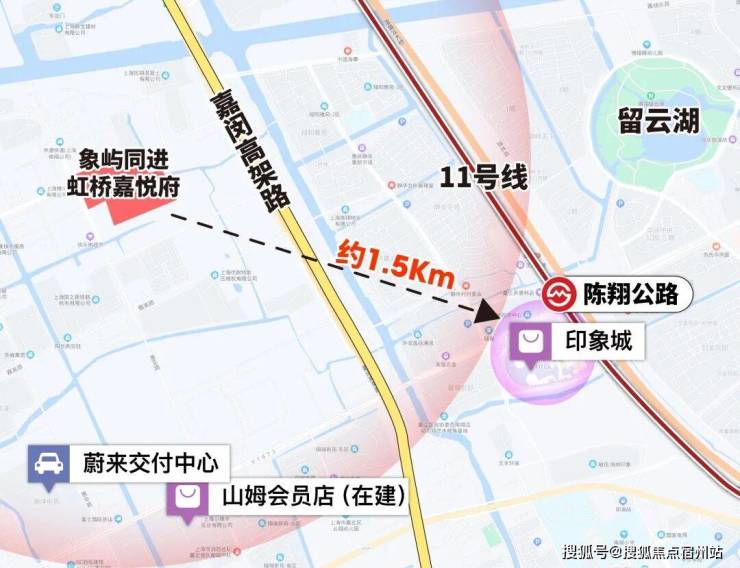 而虹桥嘉悦府直线距离印象城Mega仅约1.5公里。
