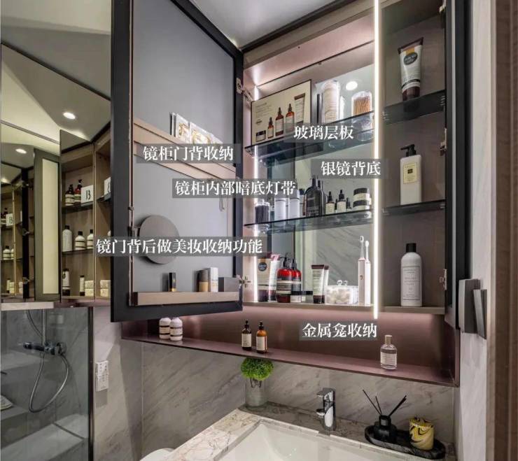 尤其是多功能到顶镜柜,堪称“女神卫生间”,不仅有360°镜面方便打扮妆容,而且还有大进深收纳空间,一定会俘虏一大波“芳心”!