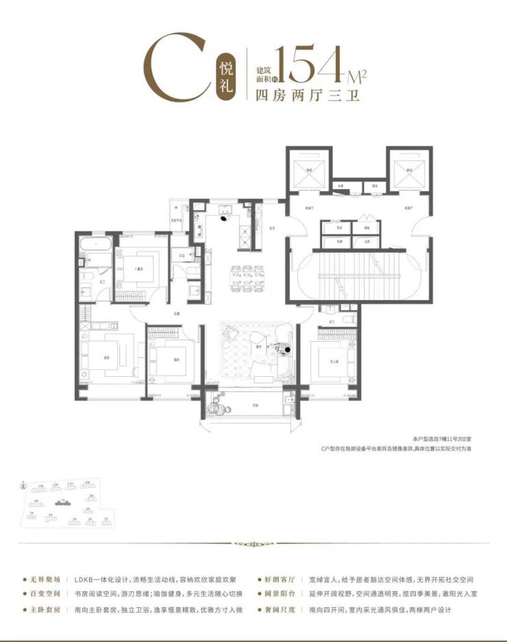 全景面宽+无界通厅+高附加值+收纳天花板,130㎡的面积直逼140㎡的尺度感!