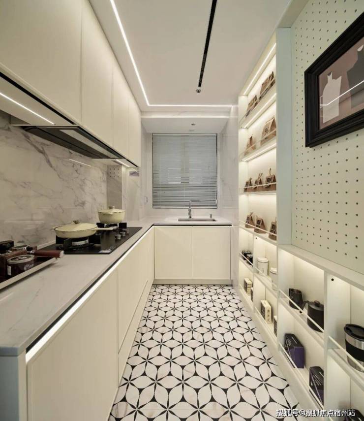 中厨借飘窗拓展了操作台面,可以放得下更多厨房小家电。
