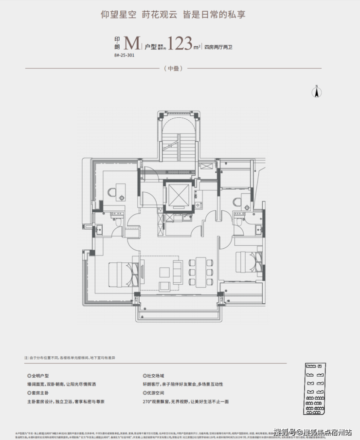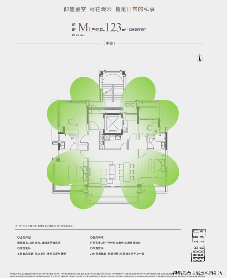 产品是一个新盘立足的根本,这次华发推出的建面约123㎡四房,属实是把改善户型的格局打开了——这个面积段四房不稀奇,但能把独立前厅、全景阳台、花池、四叶草户型这些“豪宅标配”全都塞进去,放眼整个市场都太狠了。