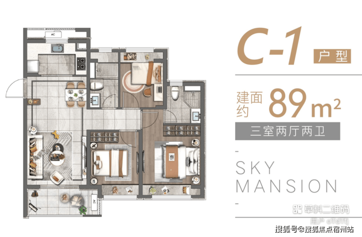 项目户型设计尤为惊艳,建面约89㎡3室2厅2卫,更是在市场上脱颖而出。