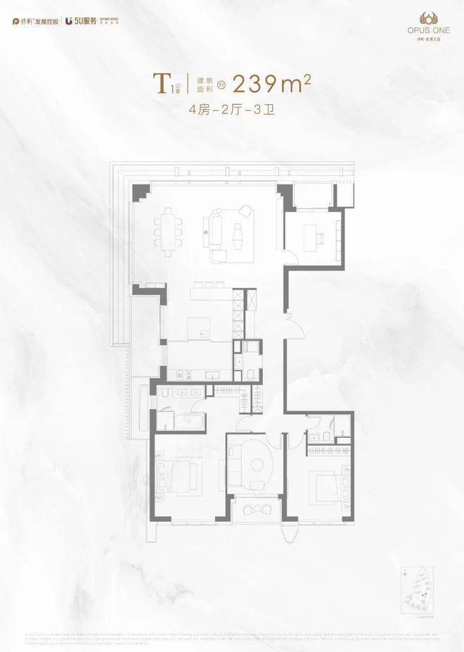 而建面约174㎡在做到极致观景面的同时,主卧面宽高达约5.7米,媲美别墅居住体验。