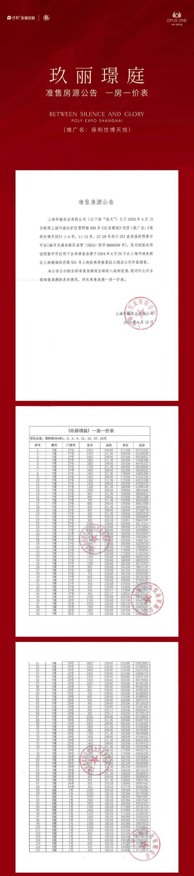 1、项目推广名为“保利·世博天悦”,地名核准名/备案名为“玖丽璟庭”,开发公司为:“上海华辕实业有限公司”;预售证号:浦东新区房管(2025)预字0000015号;2、本资料为要约邀请,不作为要约或承诺;3、相关宣传内容不排除因政府相关规划、规定及出卖人分期规划、未能控制等原因而发生变化;4、买卖双方的权利义务以双方签订的商品房买卖合同及其补充协议、附件等书面文件为准;5、本宣传材料所涉及户型仅供示意参考,具体以政府部门最终审定的图纸和销售合同为准,本资料所涉及面积皆为预估面积,相同户型单位因楼栋、楼层、单元等差异,局部结构、形式、面积、装饰等可能有所不同,且预估面积与实际面积可能存在差异,面积最终以房管局测绘为准。户型图中装修、家具、电器等设备仅为示意,不属于交付内容和交付标准,实际部品的选型和房间空间尺寸根据户型情况,略有差异,以现场实际为准;6、本宣传资料中涉及的价格、折扣、付款方式等信息,因销售时间、户型楼栋、楼层、方位等不同有所差异,以双方签订的商品房买卖合同及其补充协议、附件等书面文件为准;7、本资料所发布的内容为2025年2月的信息,敬请留意最新资料。