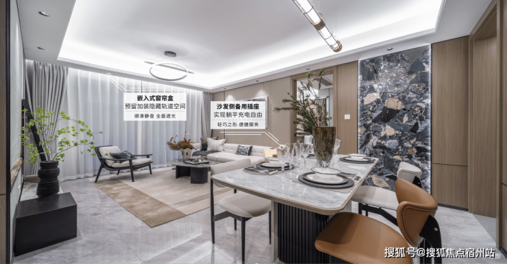 如预留电动窗帘插座与智能马桶接口这些小巧思,厨房配备抽拉龙头、一体化抗污岩板等人性化设计,卫生间采用防渗漏设计......璟宸用这些实用且有温度的小细节,默默构筑一个高效且便捷的居住环境。