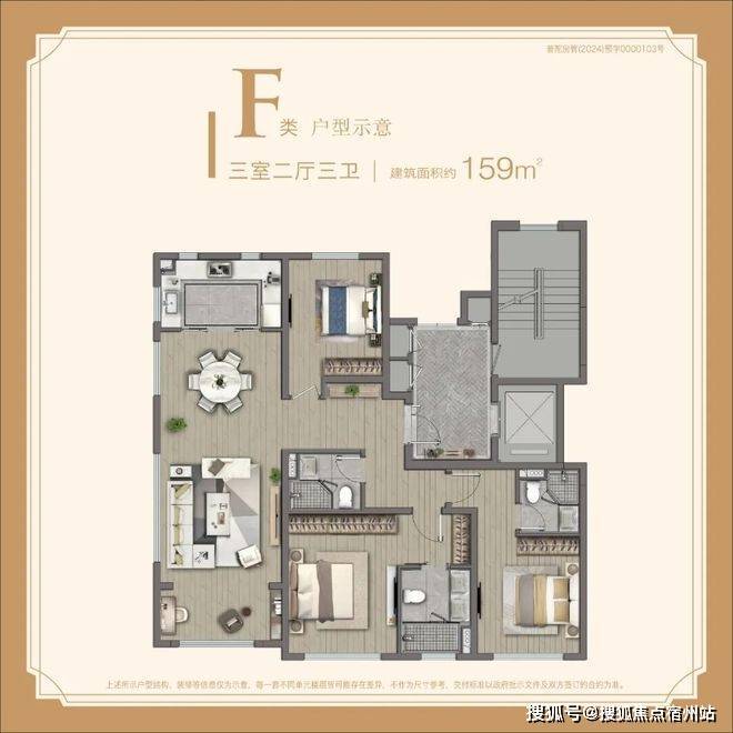 建面约159㎡大3房总价约1338万起。