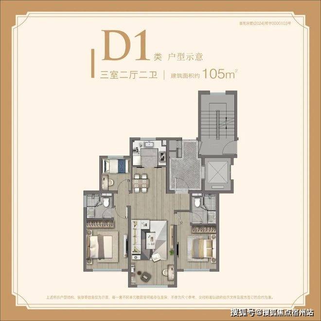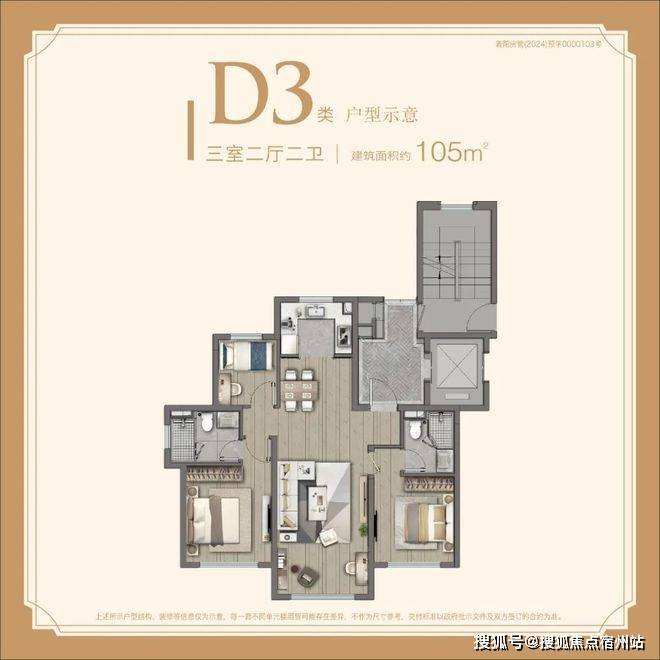 建面约105㎡3房总价约850万起;
