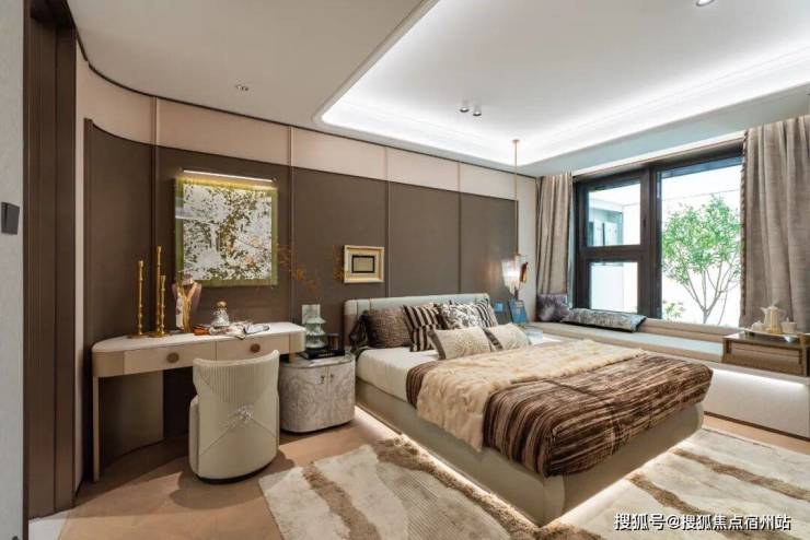 豪华的套房设计,北侧卫浴飘窗+南向床边双飘窗的设计 , 更是把这个空间的视野和收纳空间延展开来,尺度感真的很惊人。