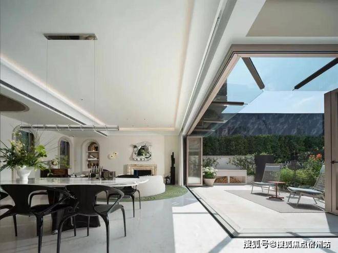 无界空间:客厅270度转角无柱设计,搭配落地玻璃,开阔视野将院中风景迎入日常。