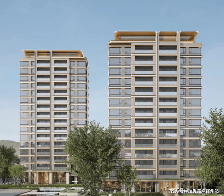 建筑是凝固的艺术,更是身份的象征。保利江上印外立面采用 大面积石材 + 铝板 + 玻璃幕墙 组合,对标上海 14 万 + 豪宅级材质标准,兼具耐久性与高级质感。设计上从现代艺术馆汲取灵感,引入 “印系” 标志性折框切分与微弧线条,平衡硬朗质感与柔和美感,打造公建化轻盈美学立面。东南西三面统一高规格界面处理,顶部辅以鎏金塔冠,优越窗墙比最大化引入城景与江景,让建筑与滨江天际线完美融合,成为东外滩一道靓丽的城市封面。