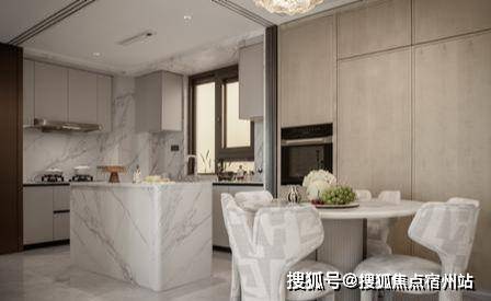 高端橱柜 + 石材台面 :定制高端橱柜,采用 ENF 级环保板材,健康无甲醛;台面选用天然石材,耐磨耐刮,质感高级。