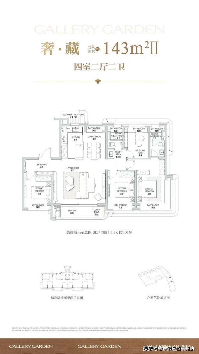建面约143㎡4房2厅2卫▼