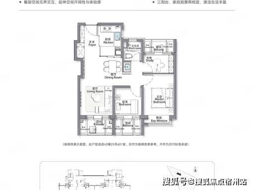 这款户型是刚需家庭的理想选择, 三开间朝南 设计,南向面宽充足,客厅连接南向阳台,两个卧室均带观景飘窗,采光通风俱佳。户型方正无浪费,动静分区明确,厨房 L 型设计,操作动线流畅;卧室空间阔绰,满足日常居住需求;卫生间干湿分离,清洁便捷。总价约 523 万起,以亲民门槛入驻中环央企品质住区,性价比拉满。