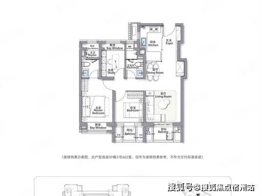 卫浴 :科勒、TOTO 等品牌洁具,干湿分离设计,镜面柜、淋浴屏等配置齐全。