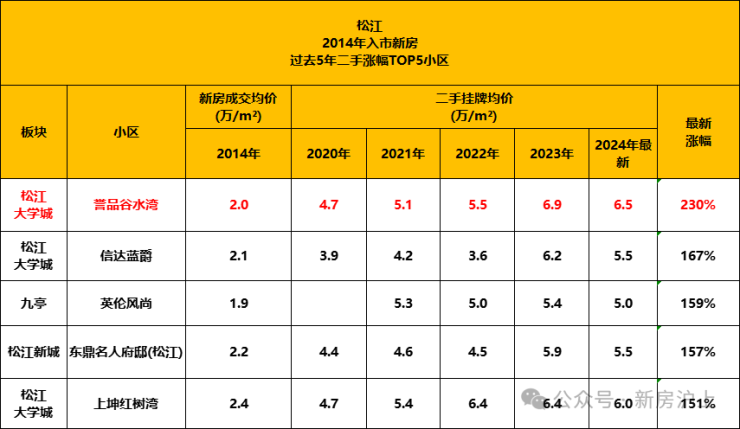 2014年入市新房中,松江新城涨幅靠前的是誉品谷水湾,当年该项目新房成交价在2万左右,现在挂牌均价高达约6.6万/㎡,约237%。☑️☑️中企誉品银湖湾售楼处电话:400-1183-605☑️☑️