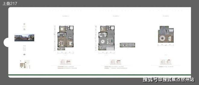 该地块拟建设13栋4F叠加别墅,有4个主力户型,包括建面约178㎡上、下叠,建面约200㎡上、下叠。其中,建面约178㎡上下叠主要分布在地块西侧,建面约200㎡上下叠主要分布在地块东侧。