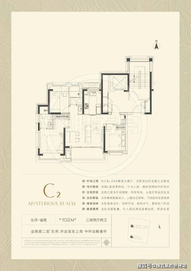 尤其项目建面约102㎡的户型,格局上超越了传统意义的三开间朝南,客厅面宽高达约5米外接差不多尺度的阳台,真正实现3.5开间,让业主起居之间沐浴更多阳光的同时,公区尺度感也直逼其他项目建面约100-120㎡户型。