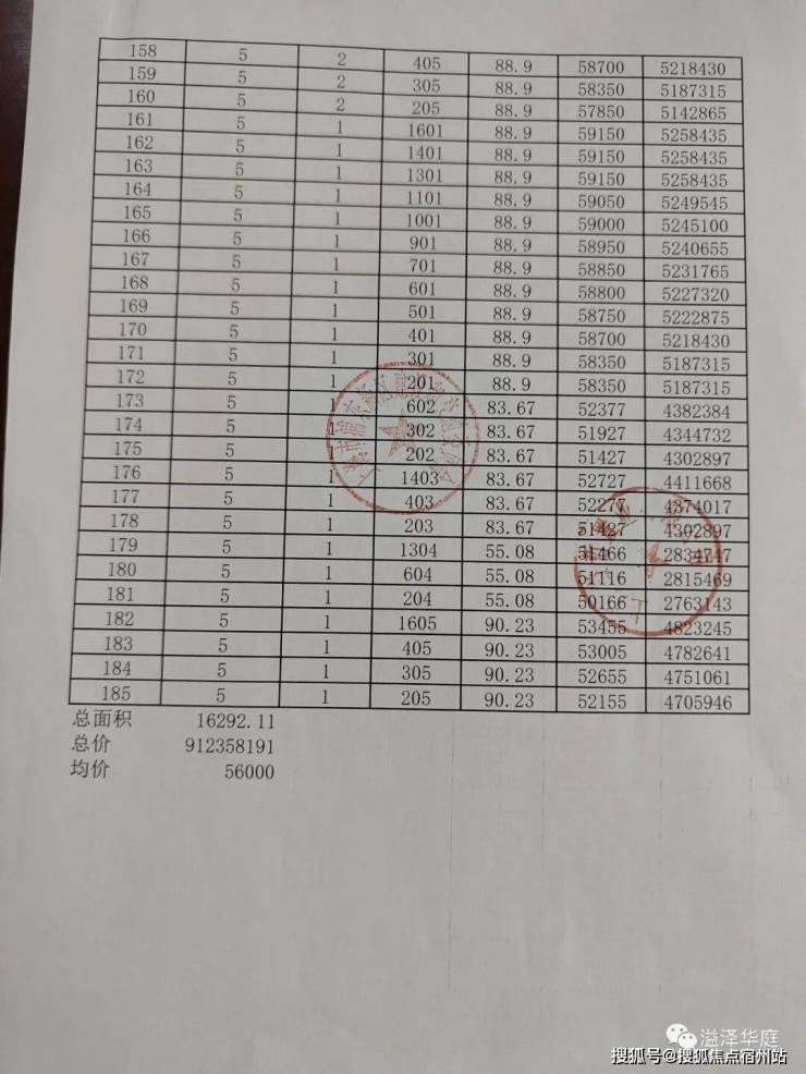 最后,附上完整一房一价表: