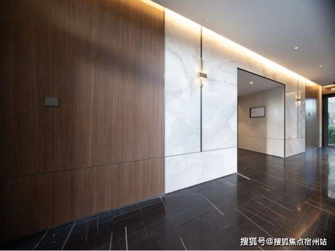 地下归家大堂用材选取意大利进口岩板,色泽温润,和谐统一。人脸识别自动移门便捷实用,金属夹丝玻璃美观大气,开阖家的尊崇与安心。