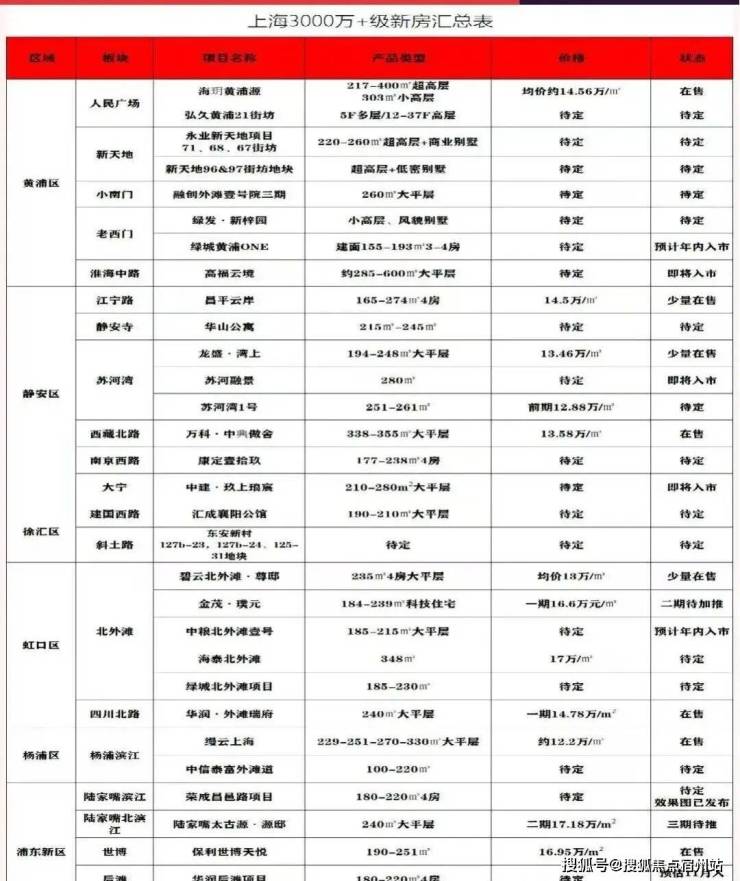 具体到总价 3000万以上豪宅新盘来讲,初步统计下来,上海核心区总价3000万以上的新盘超过 90个, 黄浦、徐汇、虹口、杨浦、浦东皆有供应!