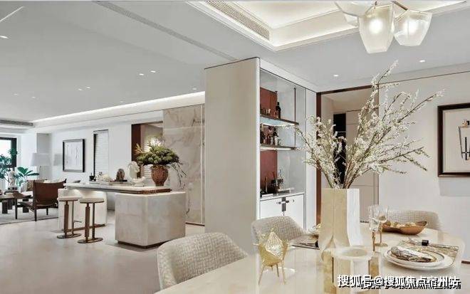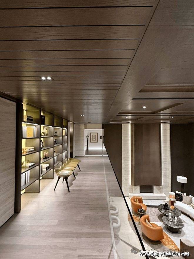 由国际知名设计团队 HWCD 操刀的 1497㎡售楼处,本身就是一件融合海派风情与现代奢华的艺术作品。入口处沉稳的木饰面与黄铜细节相映,对称廊道营造出归家的仪式感,推门而入便踏入 "时空交汇" 的美学秘境。