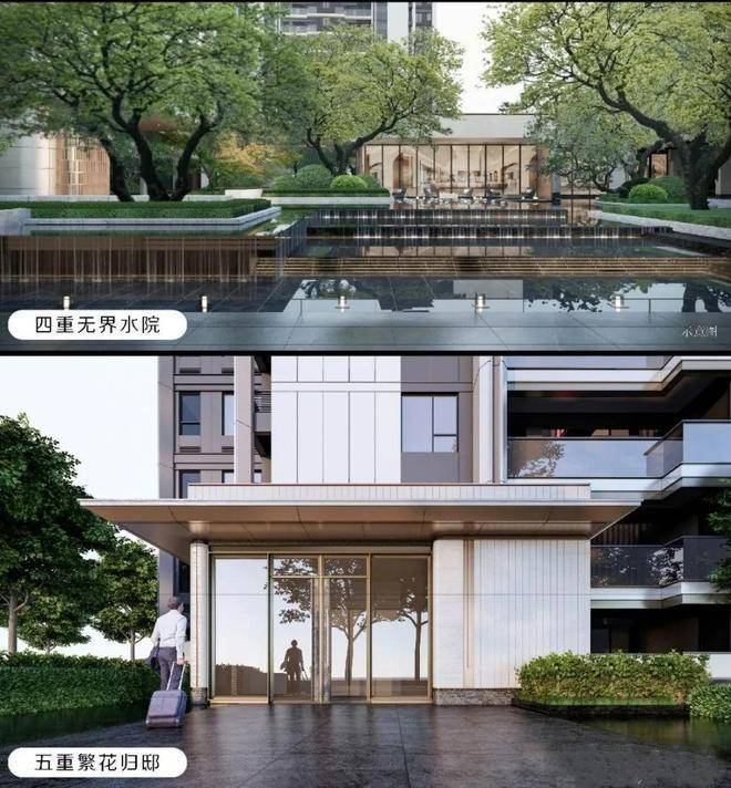 而这次的景观设计灵感,据悉是来源于很受中产喜欢的隐奢酒店。用隐奢的风格打造整个园林氛围。