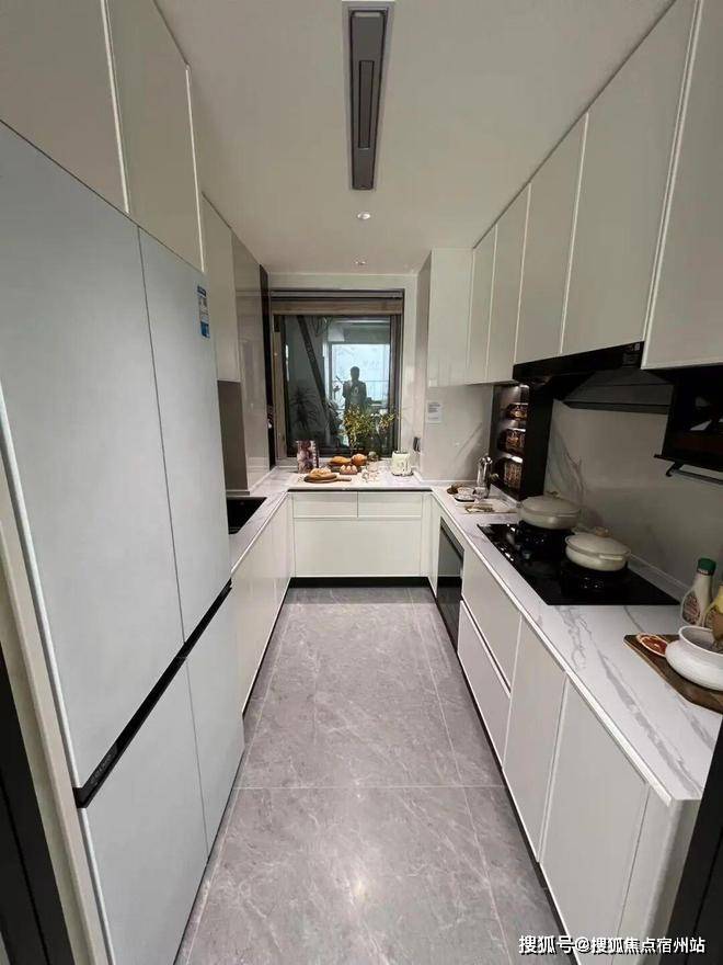 结合了一部分飘窗赠送空间的厨房,相较于市面上同面积段产品来说无疑好上了太多,只有下厨的人才知道操作台面的长度有多重要!厨房里除了冰箱以及冰箱柜,其他都是交付的: 油烟机、燃气灶、洗碗机均为方太 (或同等品牌);燃气热水器和凉霸均为美的 (或同等品牌) ;水槽和龙头是九牧(或同等品牌),还有定制橱柜和人造石台面。