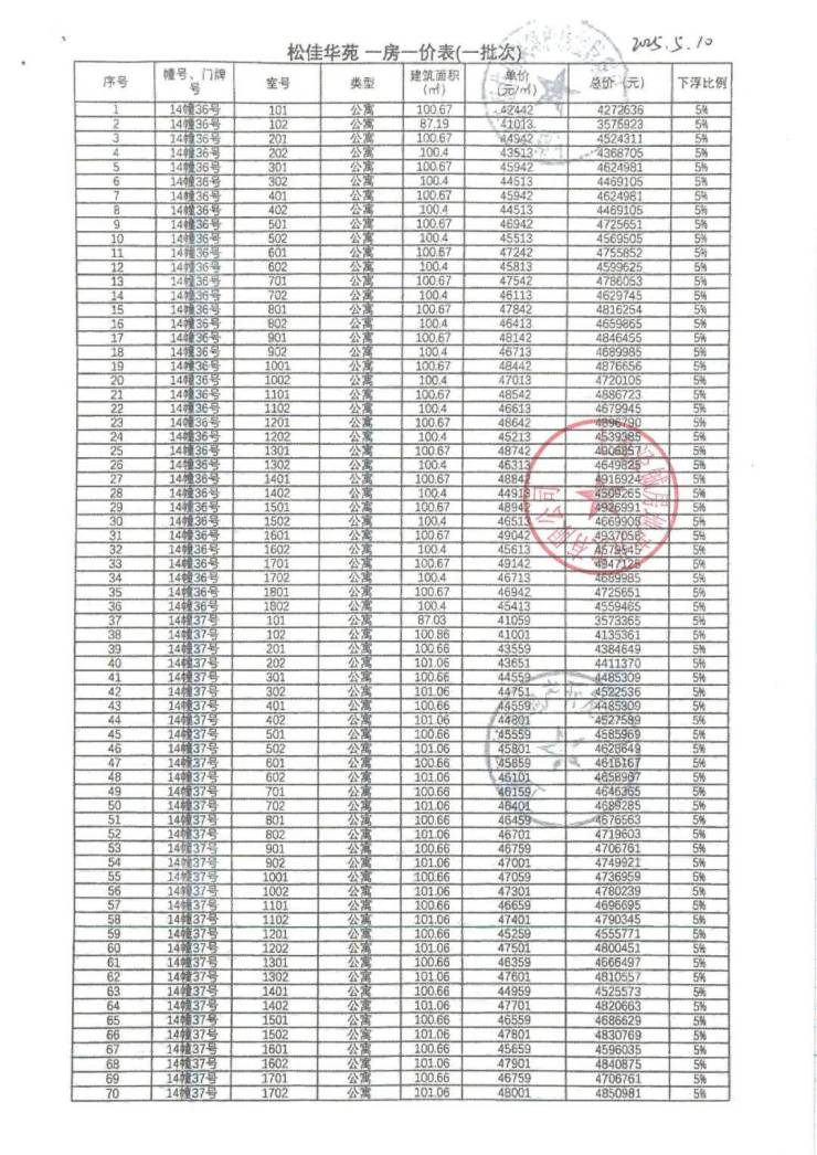 一房一价表