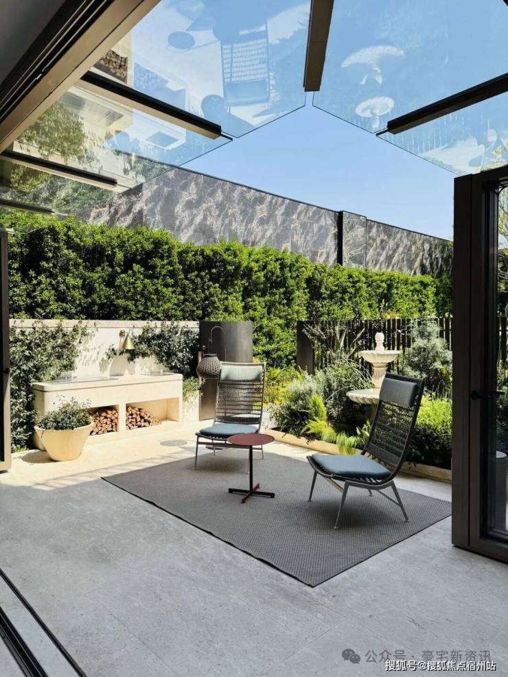 270°无柱转角玻璃厅 ,花园与客厅无界连接,阳光与江风即刻入室;