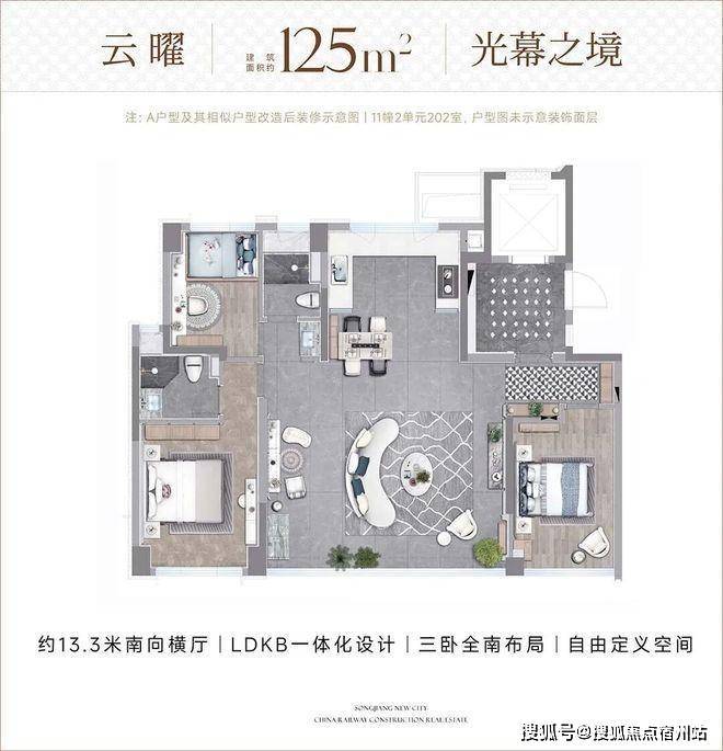 LDKB一体化设计,大面宽阳台+客厅,空间尺度感十足!