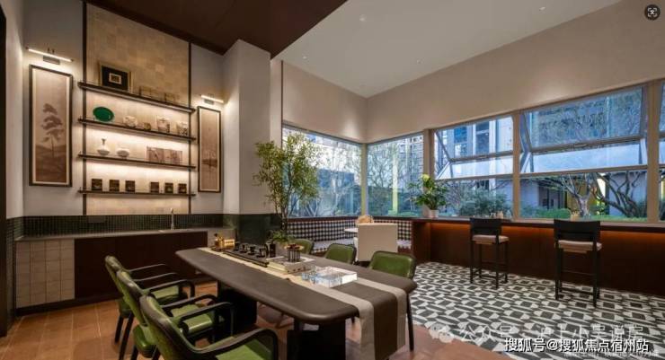 开敞式休闲景观区,则以“⽆界⾃然”为线索,临景互动区设置阶梯式观景台,让阳光清风、自然光然,俯拾皆是。