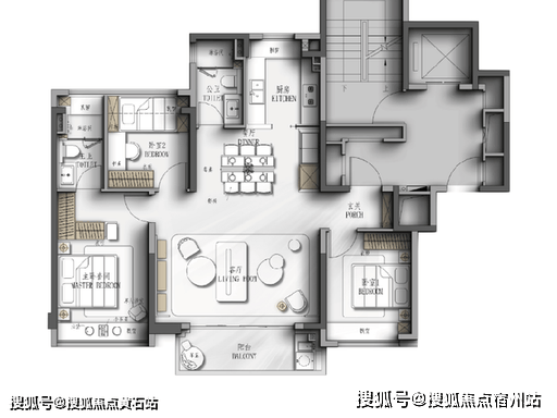 格局:双主卧套房、中西厨、家政间、独立电梯厅