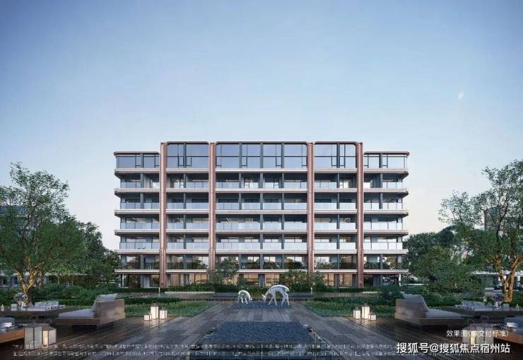 在选材上,项目采用米色石材、铝板和金属镶框进行多元混搭,重点刻画单元入口、入户大堂等细节,质感非常丰富。尤其艺术感的弧形镜面立面,与门前蜿蜒的水岸风光相呼应,让建筑仿佛拥有了呼吸感和浪漫的情绪。
