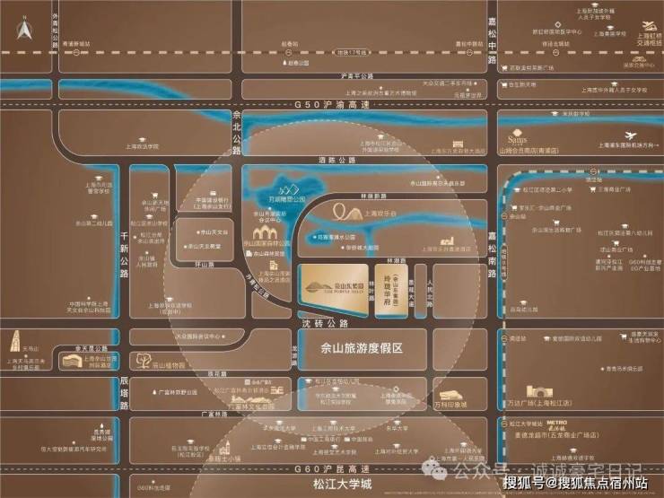 项目依山傍水,背靠佘山,直面山景,又有原生自然河穿过社区,无疑占据着板块内最核心的资源,东望东佘山与500亩月湖,西望西佘山,远眺佘山天文台。“佘山正中央”的优势,在于其是佘山为数不多的可以眺望东西佘山的别墅社区。整个项目的位置是十分的优越。