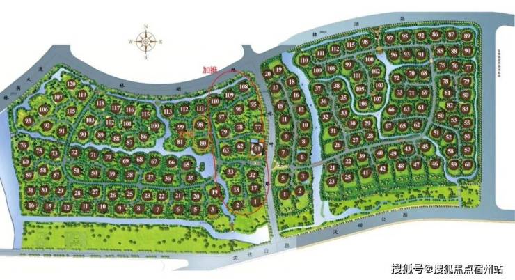整个小区总占地225亩,户均占地2.5亩,每户花园面积在1500~1800㎡,以林业路为界分两期开发,共190栋。