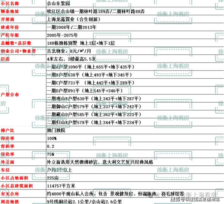 佘山的大独栋,也是让高净值人群趋之如骛的存在。目前市场上的“别墅类产品”,叠加占据了半壁江山,联排、合院产品也仅占少部分,独栋几乎绝迹,零星在售的一些房源也大部分建于2000-2005年。