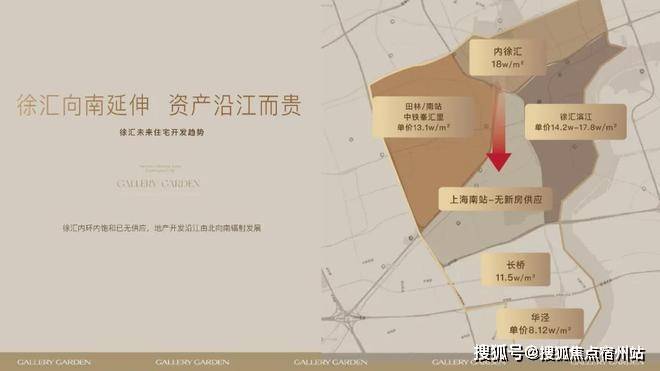 从徐汇开发趋势来看,徐汇向南延伸已成态势。近年来,徐汇作为热门的主城板块,住宅土地供应日渐紧张。随着内徐汇向南延伸,徐汇滨江以绝对实力承接了内徐汇的高单价,而随之南向开发的不断深化,上海南站区域暂无新房供应,而更靠近滨江的长桥板块相较之靠近徐汇腹地的田林、南站板块置业门槛更低,是典型的土地发展红利期。