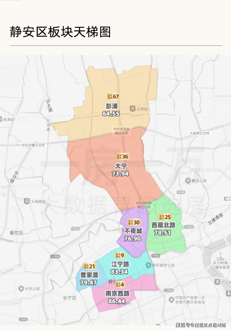新静安借助产业政策和土地储备快速崛起,逐渐撕去闸北的"下只角"标签,大宁、苏河湾也一跃成为新兴中产及高端居住区。 而老静安受限于城市界面老旧和更新缓慢,逐渐显露出疲态。