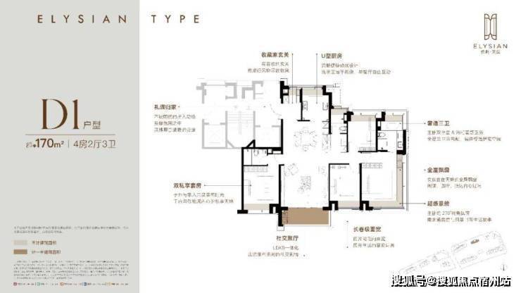 建面约 160-190㎡大四房:双套房设计,中西双厨,独立家政间,尺度奢阔,匹配高端改善家庭。