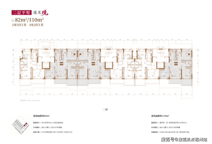 建面约80㎡2房2厅2卫/110㎡3房2厅2卫(二层平墅)