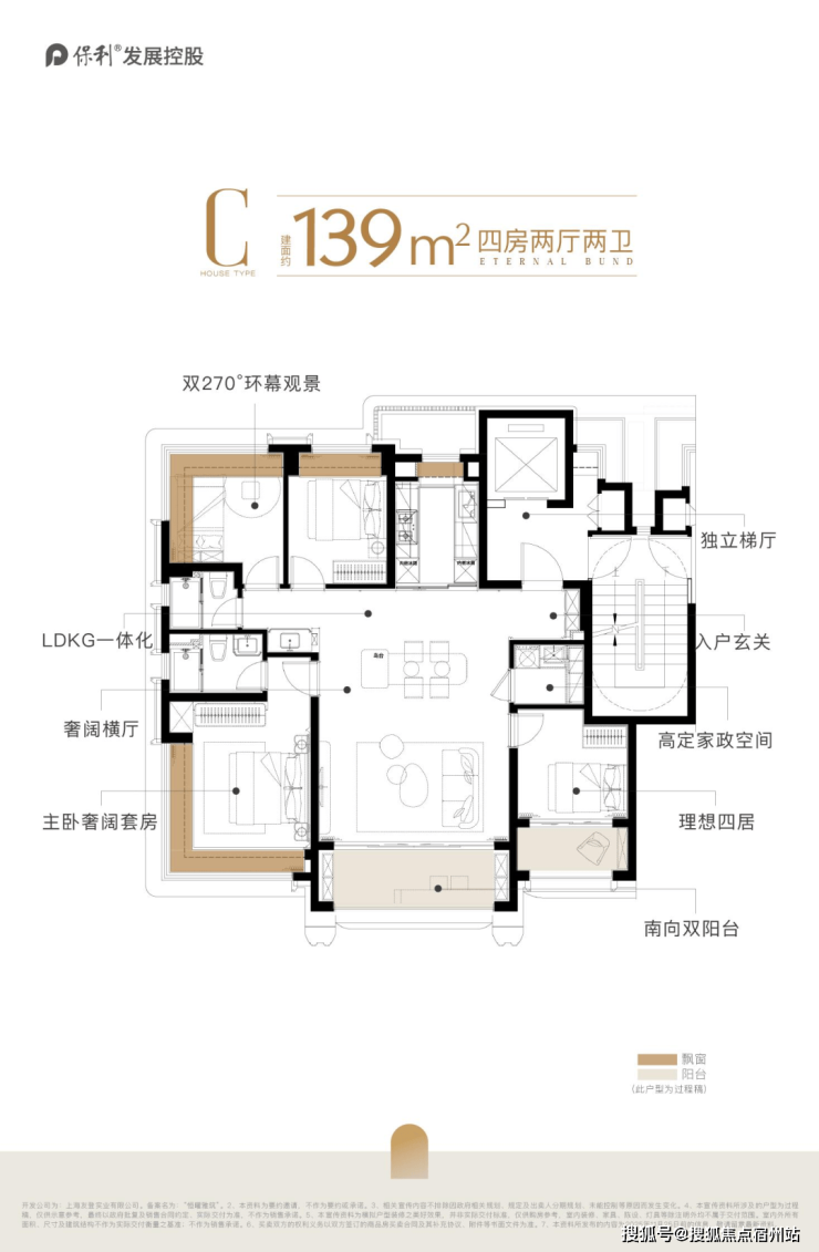 保利外滩曜建面约130㎡的实际使用率做到了约94%,双阳台+双约270°视野+一梯一户独立电梯厅+多飘窗。