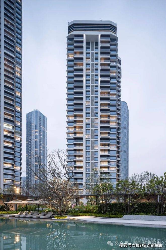 立面从湾区塔尖生活范本深圳【招商玺】汲取灵感,通过游艇曲线美学、仿游艇甲板设计,一线亲水布局,创造出全景舱观湖视野,以革新性设计理念重构流体建筑美学,打破了传统住宅建筑的平铺直叙,营造出海浪般流动的质感和韵律,通过立体解构手法实现建筑形体的悬浮感与艺术张力,构建出如游艇般舒展而流动的天际线,与远香湖的水岸线形成视觉共鸣。